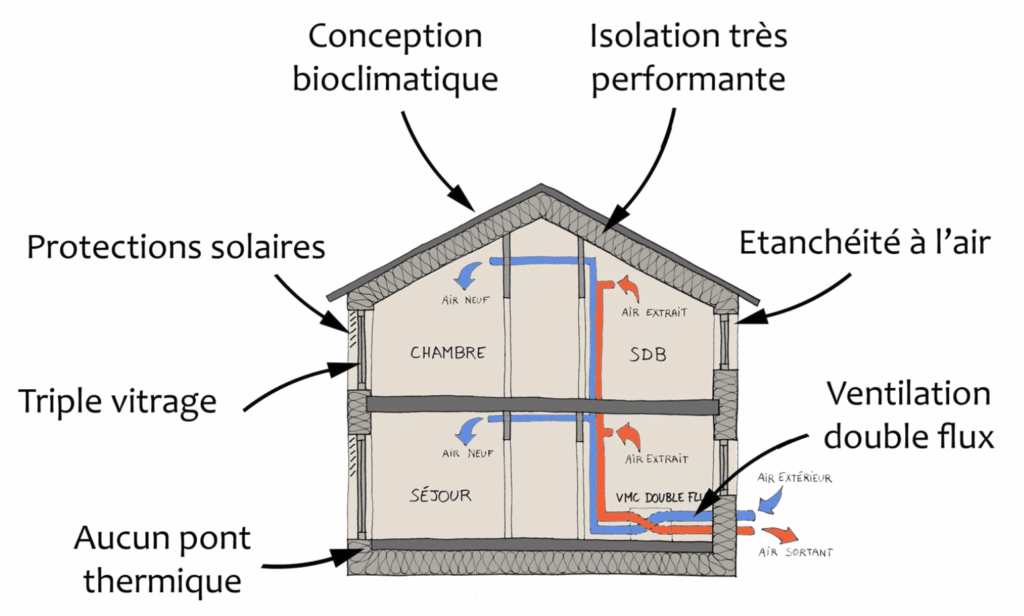 Une maison passive est une habitation conçue pour réduire drastiquement les besoins en énergie, tout en garantissant un confort thermique élevé et un air intérieur sain, été comme hiver.